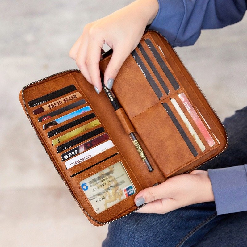 The internal structure of the small bag: dark battery, large wallet, photo holder, coin pocket, Passbook holder, zipper pocket, plaid, Pen slot