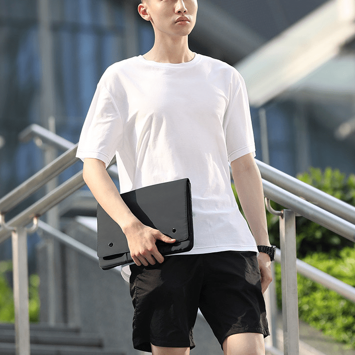 Material: Nylon Opening method: flip type With or without liner: Yes The internal structure of the bag: zipper pocket, mobile phone bag, ID bag, sandwich zipper bag, computer pocket Function: breathable, waterproof, wear-resistant, lightening Applicable gender: neutral/male and female Applicable product types: notebooks, tablets, iPads Bag size: small Whether with lock: No Processing methods: soft surface Style: Clutch pattern: plain style: Casual Hardness: Soft Bag shape: horizontal square Lifting parts: none Outer bag type: inner patch pocket Lining texture: polyester Number of shoulder straps: no shoulder strap With or without rain cover: None Accessories type: corner protector Popular elements: car suture