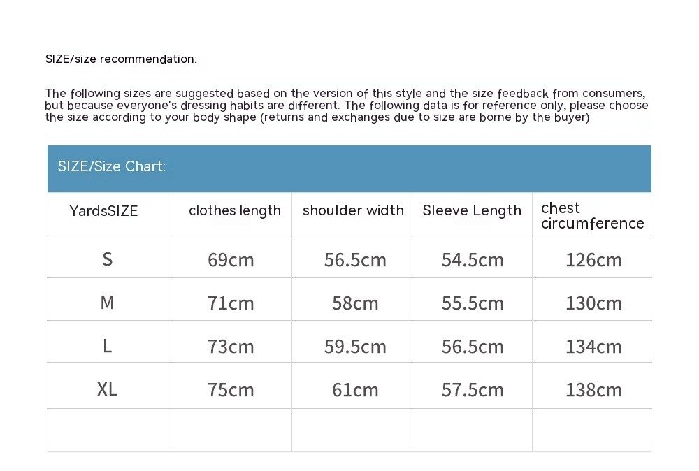 Package List: Jacket*1 | Product information: