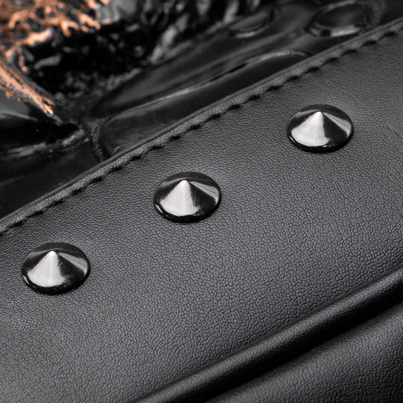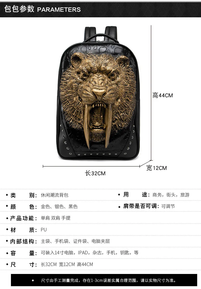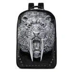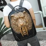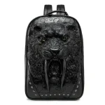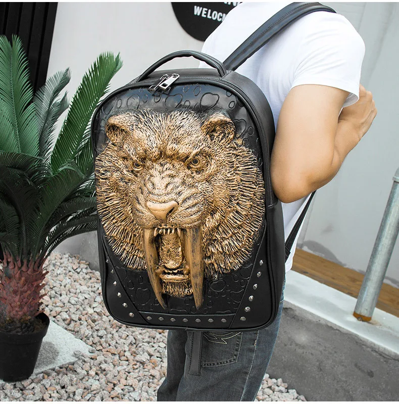 Embossed Panther Head Studded Rivet Leather Soft Travel Punk Rock Backpack Men | ShopDecimals
