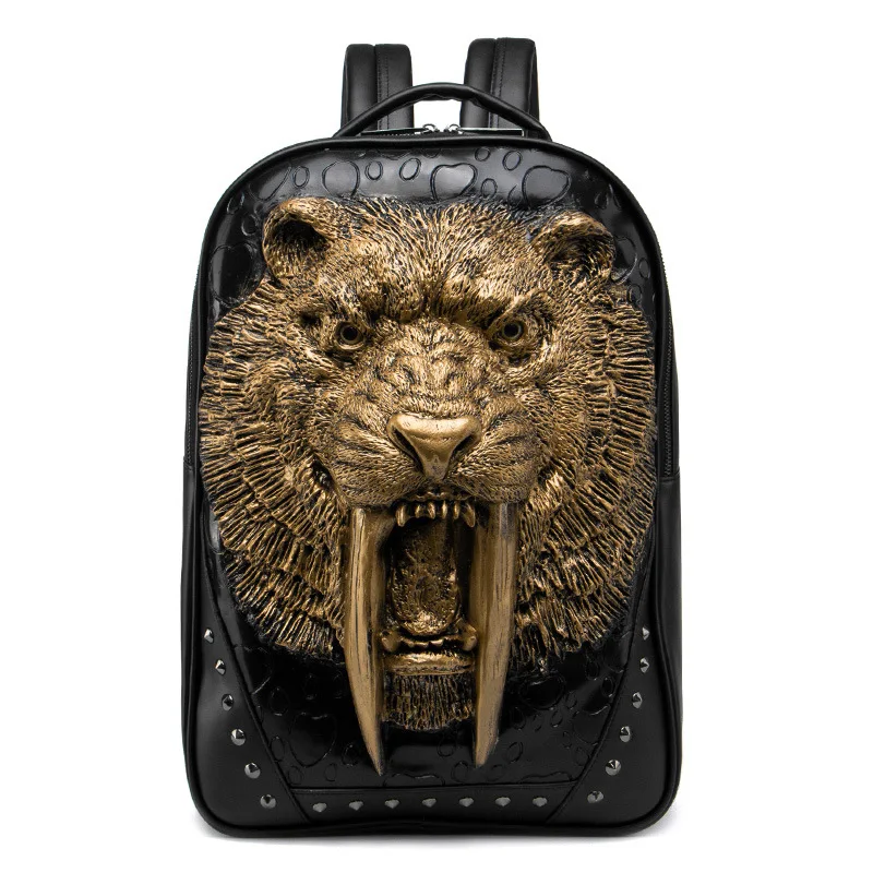 Embossed Panther Head Studded Rivet Leather Soft Travel Punk Rock Backpack Men | ShopDecimals