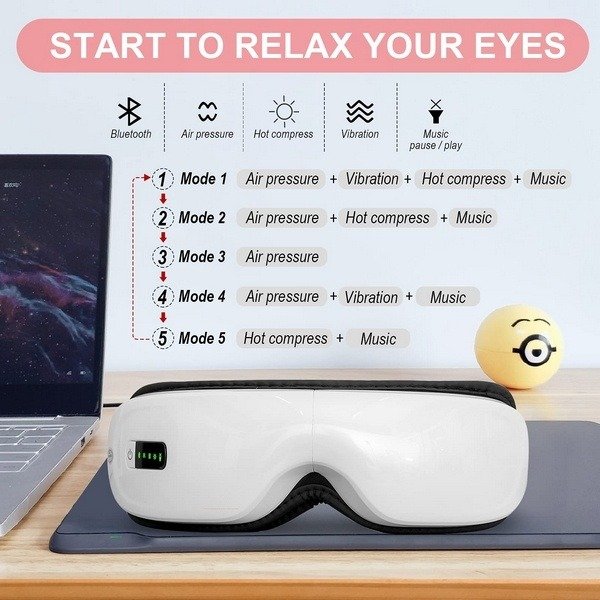 When our wireless eye massager is working,It has the functions of heating,vibrating, playing music and so on.