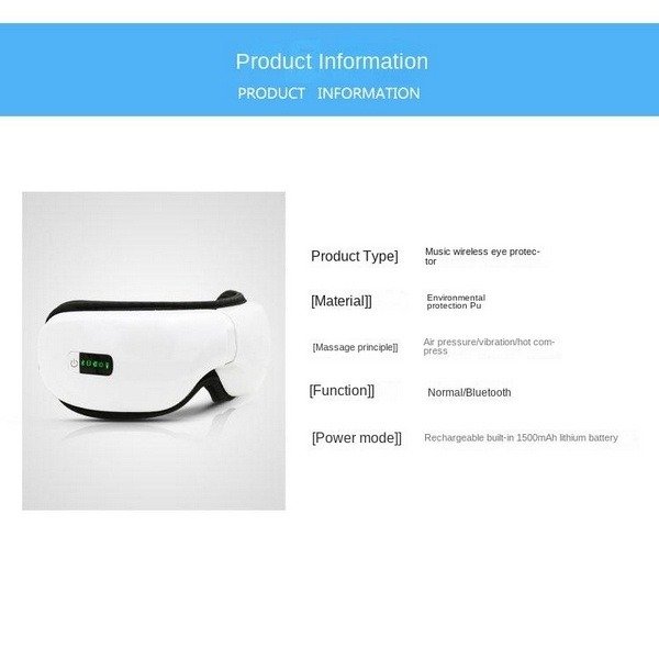 | Description | Product Information: Spending hours working on the laptop or phone can cause fatigue for your eyes and mind.Fortunately,there are things you can do to alleviate headaches and provide relaxation. The eye massager with heating can help.This device can provide different therapy methods:vibration, heating, and music. Effectively relieve eye pain,improve blood flow, improve sleep quality,reduce headaches,and alleviating chronic eye soreness. When our wireless eye massager is working,It has the functions of heating,vibrating, playing music and so on. Smart eye massager The sweet voice reminds you different modes when you turn on the eye massager and switch modes. How to Turn the eye massager On/Off? -Press the power button for 3 seconds to turn on it or turn off.After turning on,the green light is on and enter into integrated mode. How to change massage modes? -Press the power button less than 1 second to change massage mode. How to connect Bluetooth and play music? -Open Bluetooth of your cellphone and search "YBY",connect and play music. How to turn on/off the music? Double click the power button to turn on/off the music. Eye massager applicable to many groupsh The eye massager is ergonomically designed for maximum comfort.It is ideal for many people: teenagers who excessively use their mobile phone or tablet causing eye fatigue or myopia,office workers who use their computer every day,elderly people who have dry eyes,and people who have stress or insomnia | Product Information: