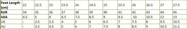 | Size | 34, 35, 36, 37, 38, 39, 40, 41, 42, 43 |
