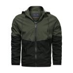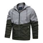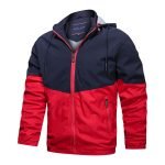 Features: stand-up collar, zipper, contrast color