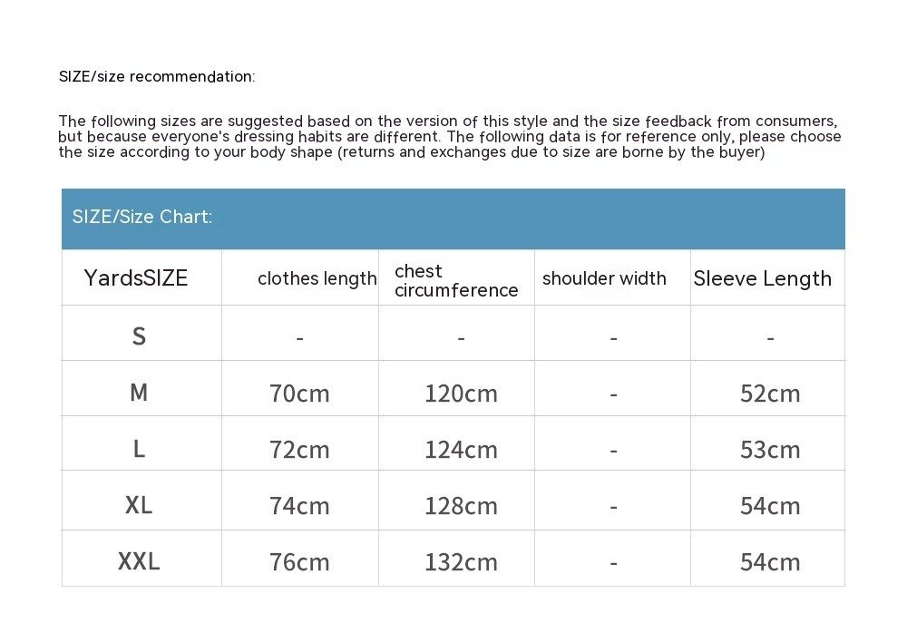 | Size | L, M, XL, XXL |
