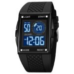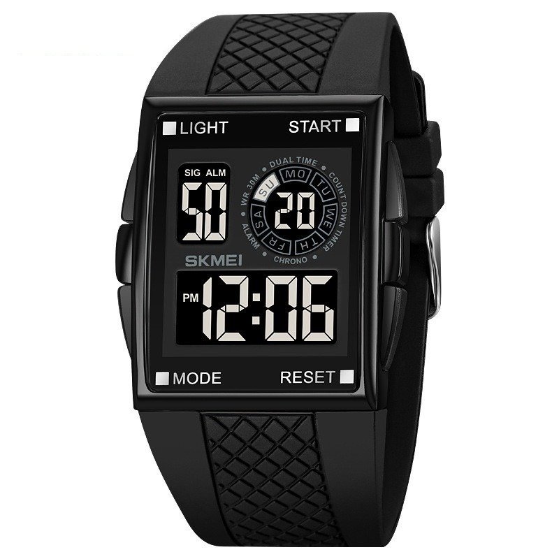| Description | Product Information:Color: Black Shell black machine Applicable population: Male Style: all-around, sports style Special features: Luminous, alarm, Chronograph, Display Type: Number Applicable people: Male Waterproof performance: 50m Movement type: Electronic Mirror material: ordinary glass mirror Strap material: PU Dial shape: rectangle Watchcase material: zinc alloy Package List: Watch * 1 | Product Information:Applicable people: male | Product information:Color: