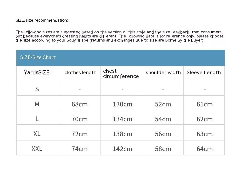| Size | L, M, XL, XXL |